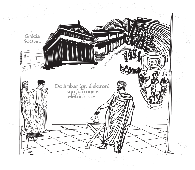 As primeiras pesquisas sobre a eletricidade aconteceram por volta do ano 600 ac., quando o filósofo grego Thales de Mileto(624aC-556aC) observou que ao esfregar um pedaço de âmbar (uma resina fóssil) com a lã ou couro, pedaços de palha eram atraídos pelo âmbar.